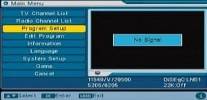 Ab aapko apne set top box me setting karni hogi, taaki aap signal ko dekh sake. Sabse pahle MENU button press kar Program Setup option ko select kare.